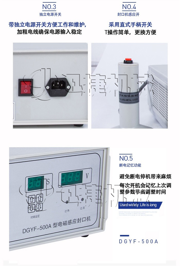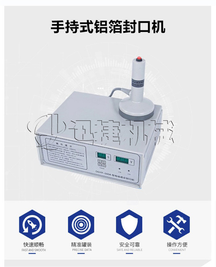 該該封口機為手持式鋁箔封口機,是一種便攜式電磁感應加熱封口設備,專為制藥、化工、農藥、食品、化妝品、輕工行業(yè)對容器進行鋁箔嚴密封口,封口材質使用廣泛。