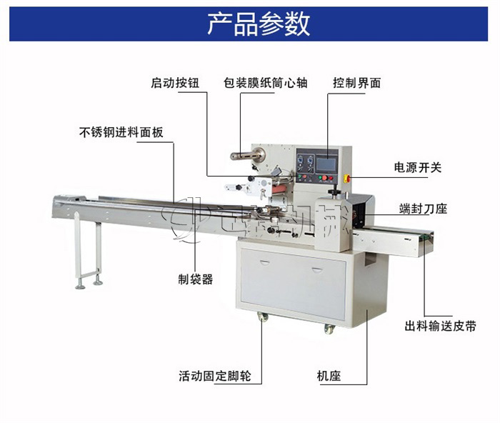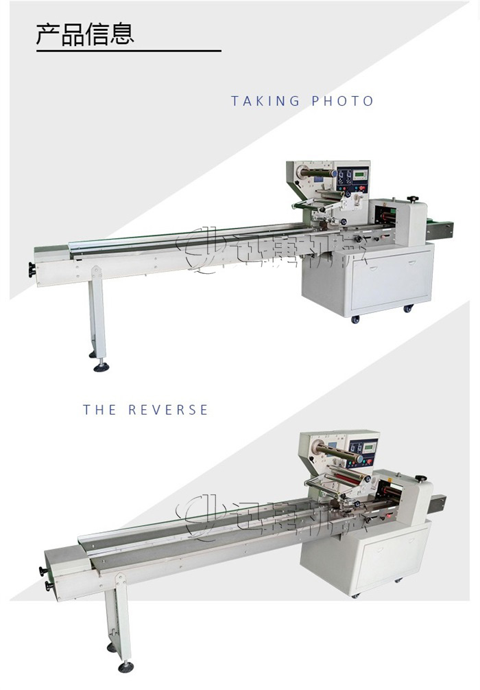 該包裝機(jī)為全自動枕式包裝機(jī),適用于各種固型產(chǎn)品的包裝,如食品類(方便面、面包、漢堡、餅干、雪糕、冷凍食品),日用品(肥皂、餐巾紙),五金配件,機(jī)械零件(軸承),橡膠制品(輪胎)等產(chǎn)品的枕式包裝。